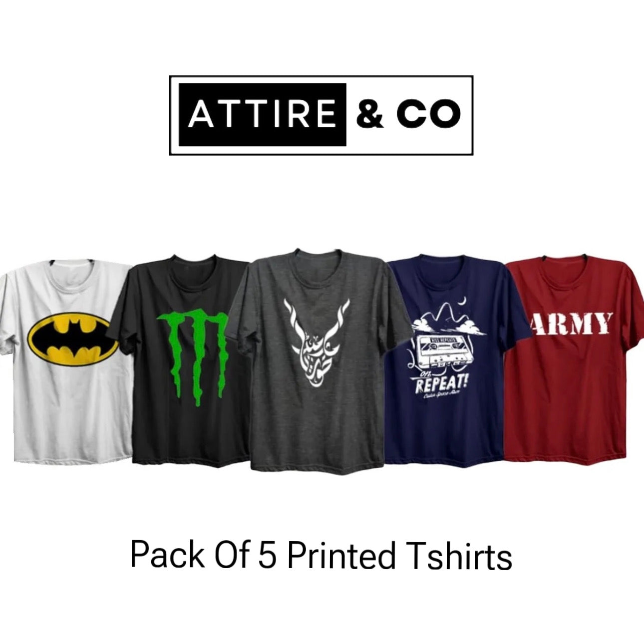 Shop for this pack of 5 printed half sleeve t-shirts, available exclusively at Attire & Co.
