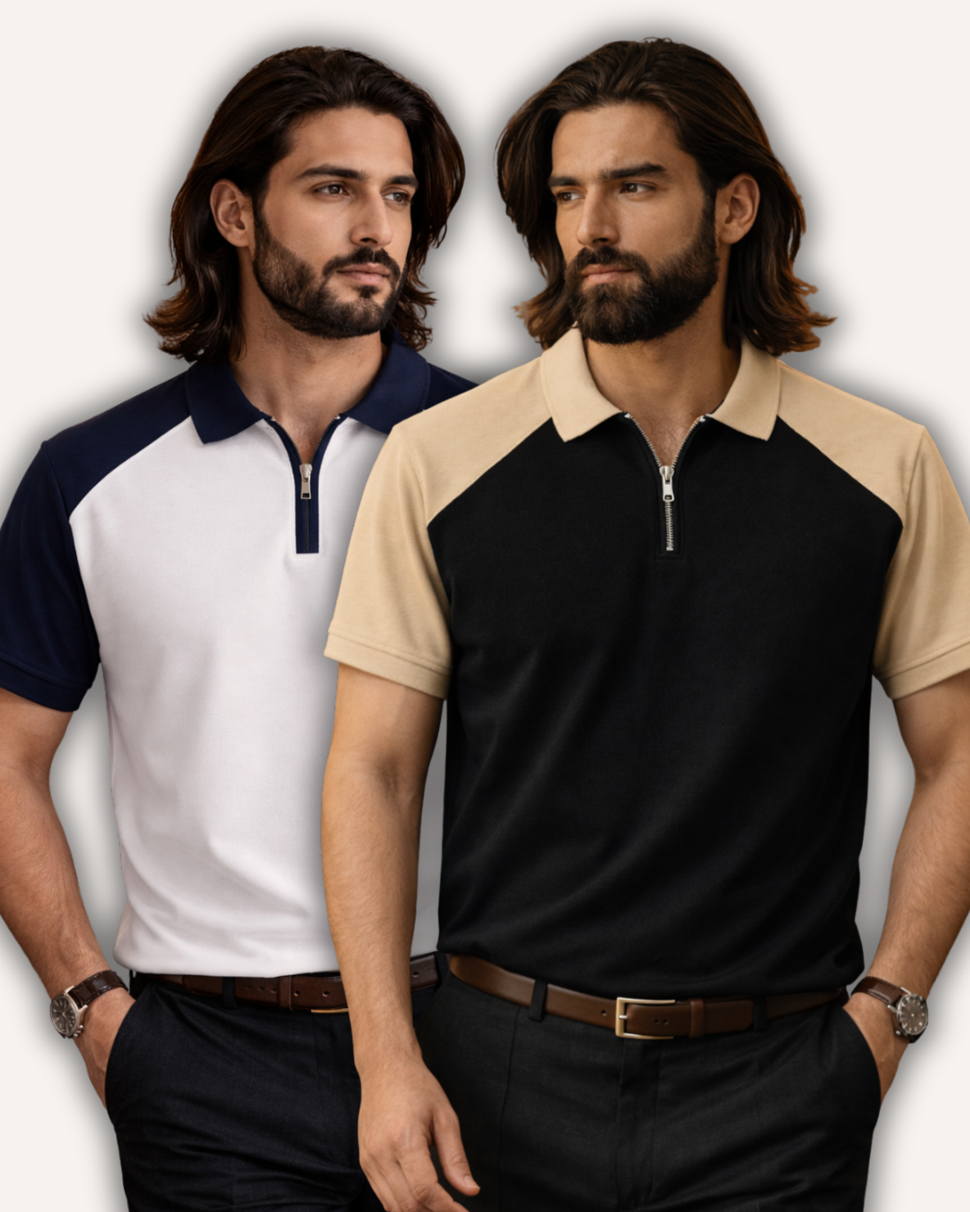 Crafted from soft, breathable fabric, both polos offer all-day comfort while maintaining a structured, tailored fit. The sleek zipper replaces traditional buttons, giving you a sharper, more contemporary look that transitions effortlessly from office wear to weekend outings.