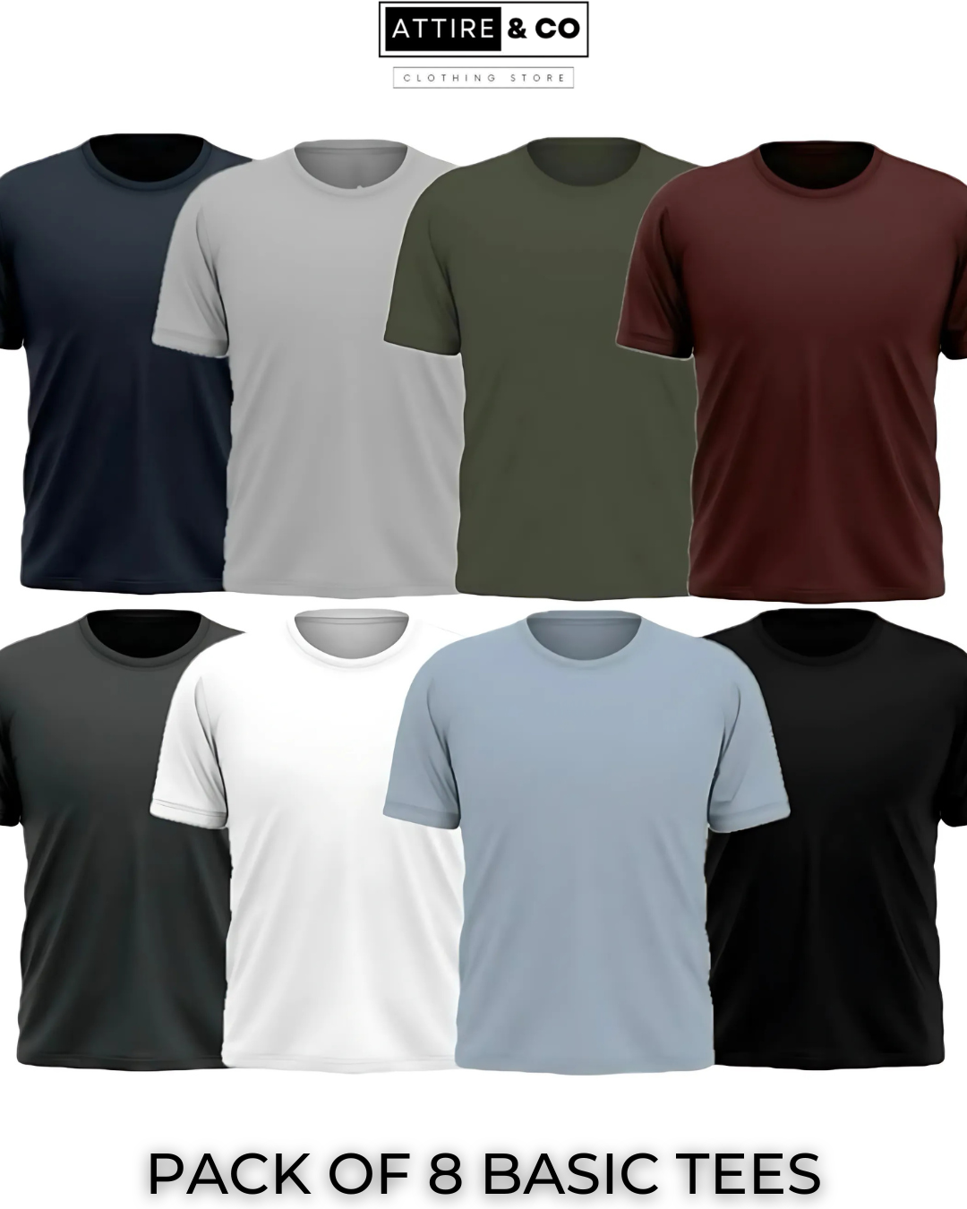 This pack contain 8 Basic T-Shirts.