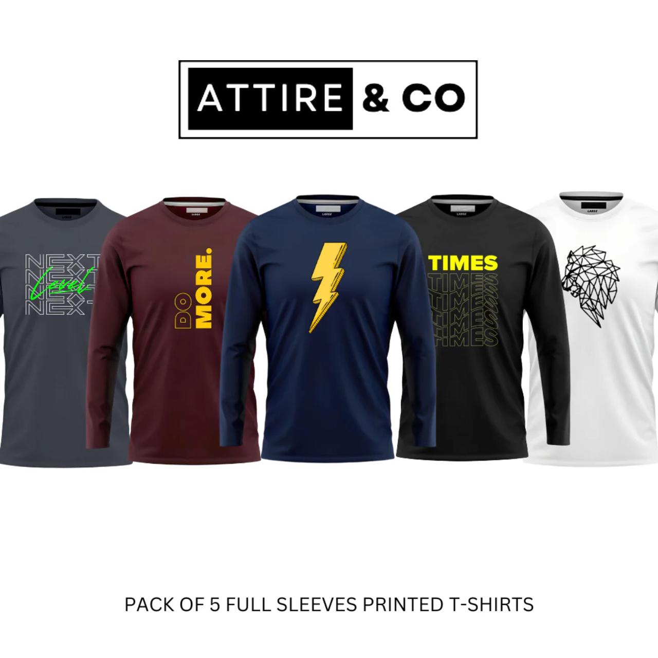 This pack contain 5 Basic Full sleeves Printed T-Shirts.