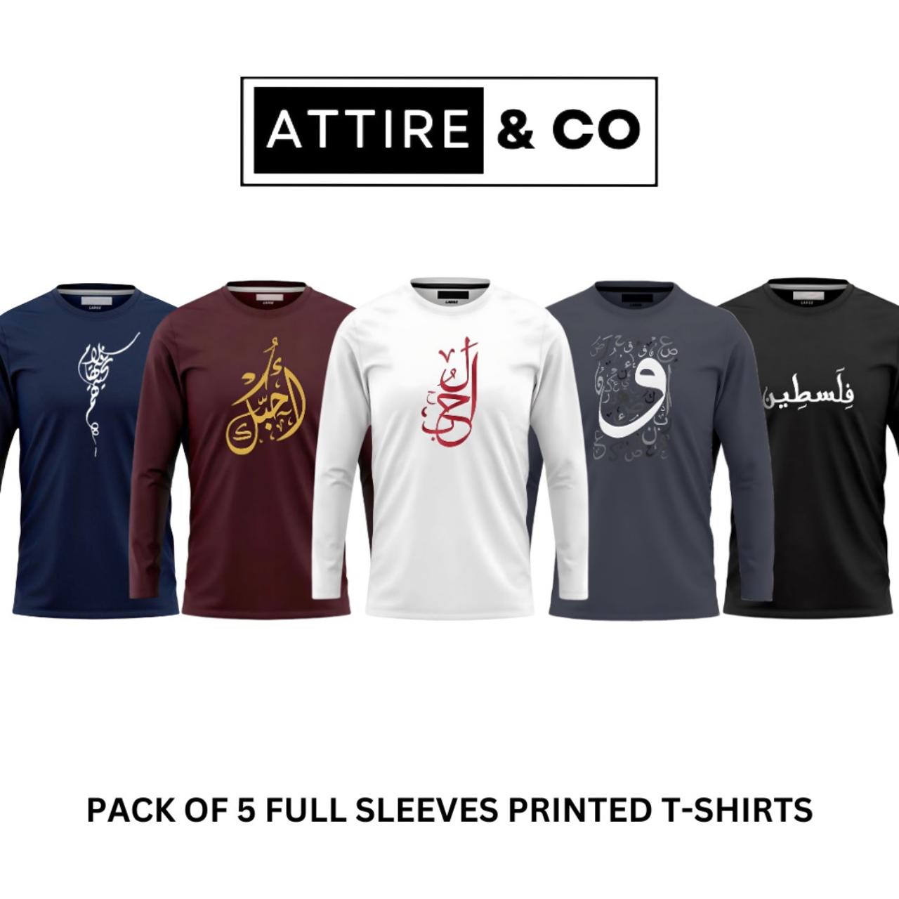 Pack of 5 Round Neck Full Sleeves Printed T-shirts