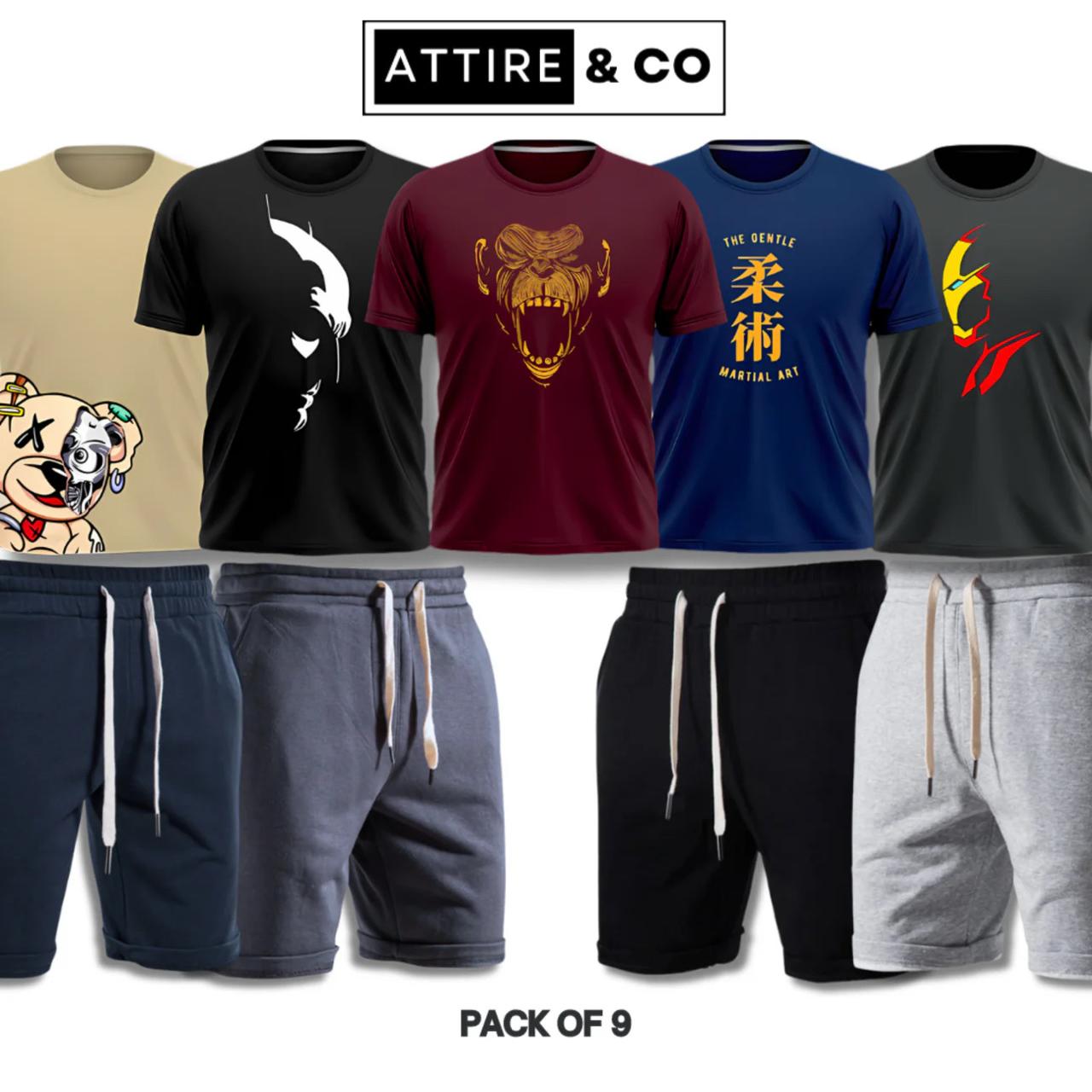 Pack of 9 Deal (5 Printed Tshirts & 4 Shorts)